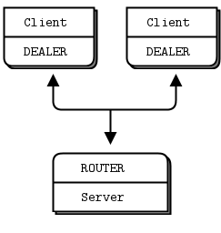 This sounds perfect for N-to-N connections, but it’s the most difficult combination to use. You should avoid it until you are well advanced with ZeroMQ. We’ll see one example it in the Freelance pattern in Chapter 4 - Reliable Request-Reply Patterns, and an alternative DEALER to ROUTER design for peer-to-peer work in Chapter 8 - A Framework for Distributed Computing.
