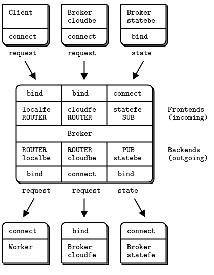 - As a proxy that switches messages between frontend and backend sockets.